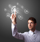 biznesmen naciskając nowoczesny typ społecznego ikony