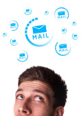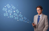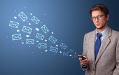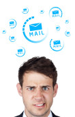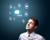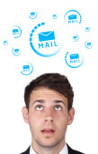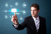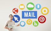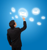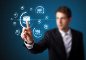 Businesswoman pressing virtual messaging type of icons