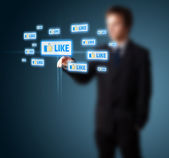 Businesswoman pressing modern social type of icons