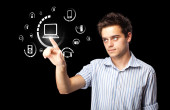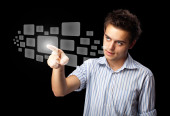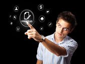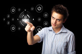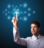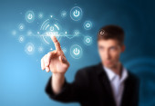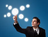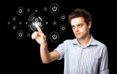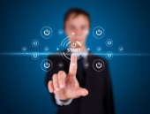biznesmen naciskając typu prostego przycisków start