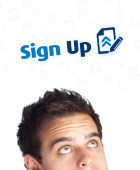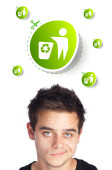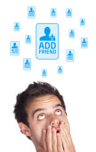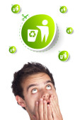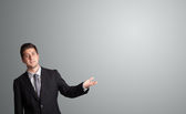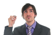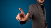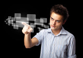 Biznesmen wciskający nowoczesne przyciski typu high tech