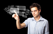 Zdjęcie "Biznesmen wciskający wirtualne media typu buttons" może być wykorzystywane do celów osobistych i komercyjnych zgodnie z warunkami zakupionej licencji Royalty-free. Obraz jest dostępny do pobrania w jakości wysokiej rozdzielczości do 5760x3840.