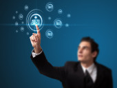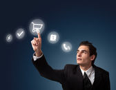 biznesmen naciskając nowoczesny typ społecznego ikony
