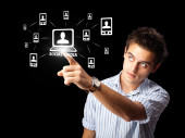 biznesmen naciskając nowoczesny typ społecznego ikony