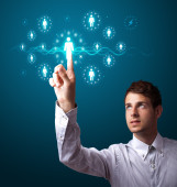 biznesmen naciskając nowoczesny typ społecznego ikony