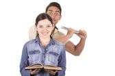 para wesoły zadowolony atrakcyjnych uczniów gospodarstwa książki