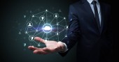 biznesmen naciskając nowoczesny typ społecznego ikony