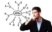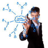 biznesmen naciskając nowoczesny typ społecznego ikony