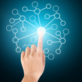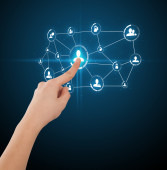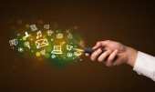 biznesmen naciskając nowoczesny typ społecznego ikony