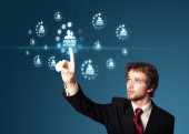Biznesmen wciskający nowoczesne przyciski typu high tech