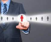 biznesmen naciskając nowoczesny typ społecznego ikony