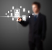 biznesmen naciskając nowoczesny typ społecznego ikony