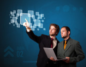 Biznesmen wciskający nowoczesne przyciski typu high tech