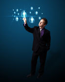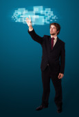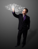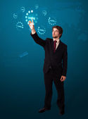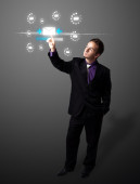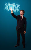 biznesmen naciskając nowoczesny typ przycisków