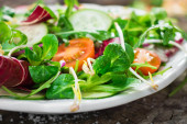 Zdjęcie "Świeża sałatka wiosenna" może być wykorzystywane do celów osobistych i komercyjnych zgodnie z warunkami zakupionej licencji Royalty-free. Obraz jest dostępny do pobrania w jakości wysokiej rozdzielczości do 5760x3840.