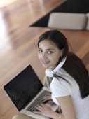 Zdjęcie "Kobieta w domu pracy na komputerze przenośnym" może być wykorzystywane do celów osobistych i komercyjnych zgodnie z warunkami zakupionej licencji Royalty-free. Obraz jest dostępny do pobrania w jakości wysokiej rozdzielczości do 5760x3840.