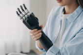 Zdjęcie "Zbliżenie dziewczyny z bioniczną ręką ćwiczącą na macie treningowej podczas treningu sportowego" może być wykorzystywane do celów osobistych i komercyjnych zgodnie z warunkami zakupionej licencji Royalty-free. Obraz jest dostępny do pobrania w jakości wysokiej rozdzielczości do 5760x3840.