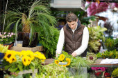 kobieta wybierając kwiaty na rynku