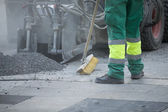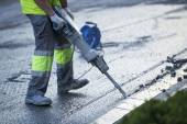 Sprzęt łamanie jako wiertło konstruktora pracownika z młotem pneumatycznym