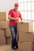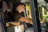 Posłaniec dojrzały mężczyzna Kurier dostarczanie paczek