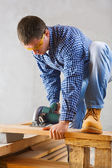 złota rączka cieśla dojrzały nosić belki drewniane