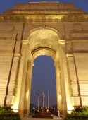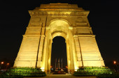Zamknij widok Bramy Indii z światła w nocy, New Delhi
