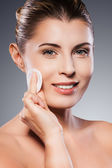 Afrykańskie kobiety rozprzestrzenienia się śmietany na twarz