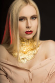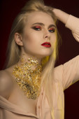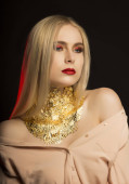 Piękna kobieta sexy blond włosy tworzą koktajl suknię