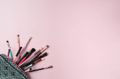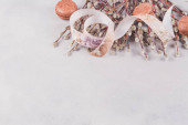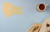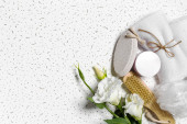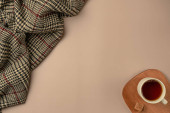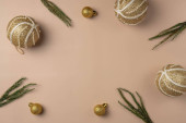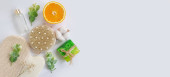 Kreatywna płaska kompozycja świecka z butelką szampana i miejscem na tekst na fioletowym tle