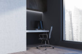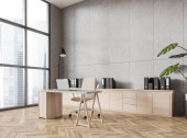 Zdjęcie "Wnętrze nowoczesnej kuchni z białymi i beżowymi ścianami, betonową podłogą, beżowymi szafkami i szafkami, stołem jadalnym z szarymi krzesłami i przestrzenią do kopiowania po prawej stronie. 3d renderowanie" może być wykorzystywane do celów osobistych i komercyjnych zgodnie z warunkami zakupionej licencji Royalty-free. Obraz jest dostępny do pobrania w jakości wysokiej rozdzielczości do 5760x3840.