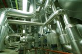 Strefa przemysłowa, rurociągi stalowe, zawory i drabiny