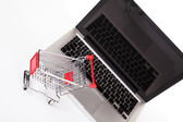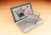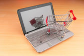 Internet online zakupy koncepcja z komputera i koszyk