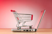 Internet online zakupy koncepcja z komputera i koszyk