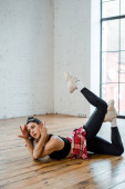 Pełna wdzięku tancerka rozciąga kończyny i skupia się na stawach biodrowych i skokowych podczas treningu