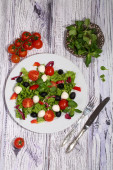 Zdjęcie "Sałatka z mozzarelli, pomidory, oliwki, sałatka " może być wykorzystywane do celów osobistych i komercyjnych zgodnie z warunkami zakupionej licencji Royalty-free. Obraz jest dostępny do pobrania w jakości wysokiej rozdzielczości do 5760x3840.