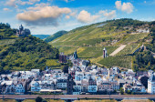 Panoramiczny widok na Bacharach. Bacharach to małe miasteczko w dolinie Renu w Nadrenii-Palatynacie w Niemczech. Bacharach to małe miasteczko w dolinie Renu w Nadrenii-Palatynacie, w Niemczech