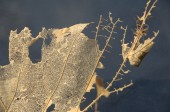 Tekstura ze zgniłych liści z włókien na powierzchni betonu - filigran streszczenie