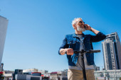 Zdjęcie "atrakcyjny wesoły dojrzały mężczyzna w okularach w czarnej koszuli siedzi na podłodze i uśmiecha się do kamery" może być wykorzystywane do celów osobistych i komercyjnych zgodnie z warunkami zakupionej licencji Royalty-free. Obraz jest dostępny do pobrania w jakości wysokiej rozdzielczości do 5760x3840.