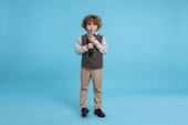 Zdjęcie "pewny siebie filmowiec chłopiec w berecie i okulary siedzi na fotelu reżysera i trzyma czerwony megafon" może być wykorzystywane do celów osobistych i komercyjnych zgodnie z warunkami zakupionej licencji Royalty-free. Obraz jest dostępny do pobrania w jakości wysokiej rozdzielczości do 5760x3840.