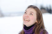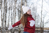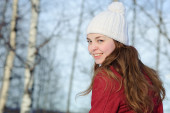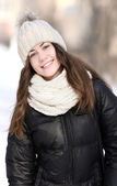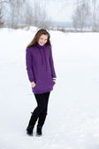 młody ładny ocieplenie z rękawiczki i płaszcz w zimie