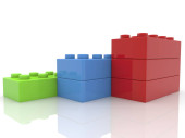 Plastikowe cegiełki tworzące ściany, zabawki dzieci na białym tle