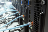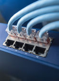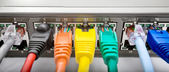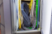Zdjęcie "Przełącznik sieciowy Gigabit Smart PoE z podłączonymi kablami sieciowymi testowany na biurku" może być wykorzystywane do celów osobistych i komercyjnych zgodnie z warunkami zakupionej licencji Royalty-free. Obraz jest dostępny do pobrania w jakości wysokiej rozdzielczości do 5760x3840.
