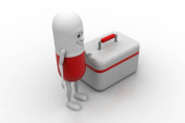 Skarbonka z koło ratunkowe. Na białym tle. Widok z boku