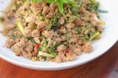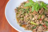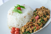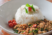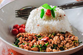 Ryż z dodatkiem smażonej wieprzowiny i bazylii
