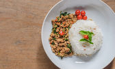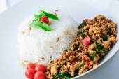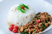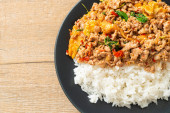 Zdjęcie "Ryż z dodatkiem smażonej wieprzowiny i bazylii" może być wykorzystywane do celów osobistych i komercyjnych zgodnie z warunkami zakupionej licencji Royalty-free. Obraz jest dostępny do pobrania w jakości wysokiej rozdzielczości do 5760x3840.