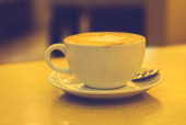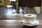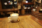 kawa na tle drewna