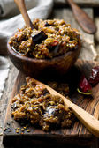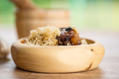 Duszona kapusta z wieprzowiną, kiełbasą i grzybami. Bigos - tradycyjna polska kuchnia.