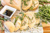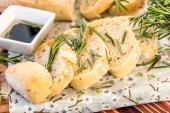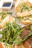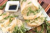świeżo upieczony bochenek chleba resomary i oliwy z oliwek i ocet balsamiczny vineg
