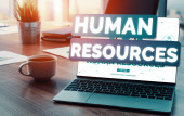 Human Resources Management HR, Employee Engagement and Development recruitment, employee and workplace. Manger checking the employees profiles online survey form.