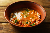 Zdjęcie "Zupa fasolowa w misce na drewnianym stole tło" może być wykorzystywane do celów osobistych i komercyjnych zgodnie z warunkami zakupionej licencji Royalty-free. Obraz jest dostępny do pobrania w jakości wysokiej rozdzielczości do 5760x3840.